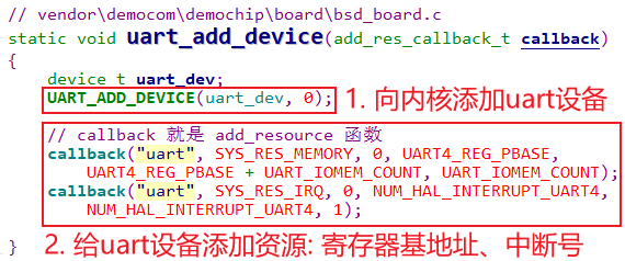 device_t中设置资源,比如寄存器物理基地址、中断号等 -