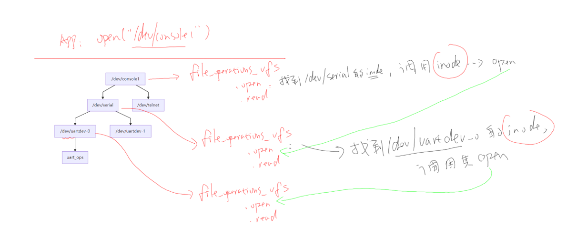 virtual_serial_init函数会找到/dev/uartdev-0的驱动程序(即它对应的struct inode,里面含有file_operations_vfs)。