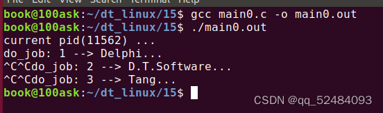 我们键入 Ctrl + C,发送 SIGINT 信号给当前进程,SIGINT 信号的默认行为是终止进程,但是此时进程还是正常的在运行,说明屏蔽信号已经生效了