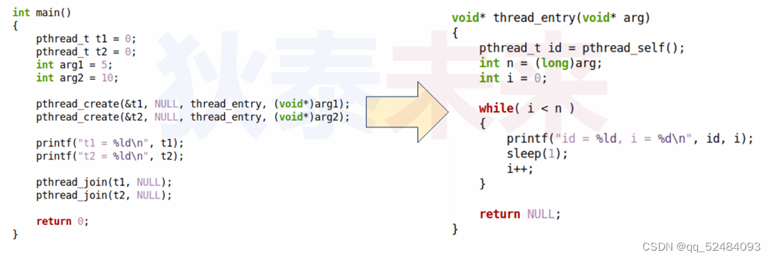 - start_routine:线程入口函数