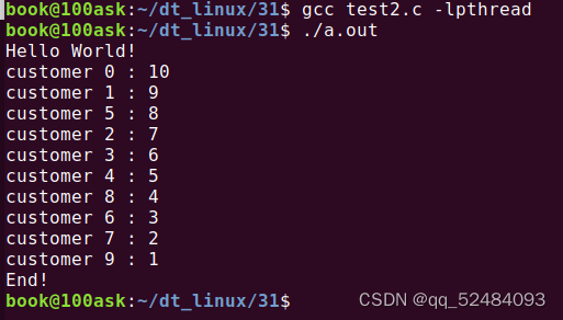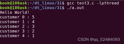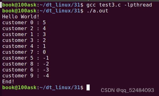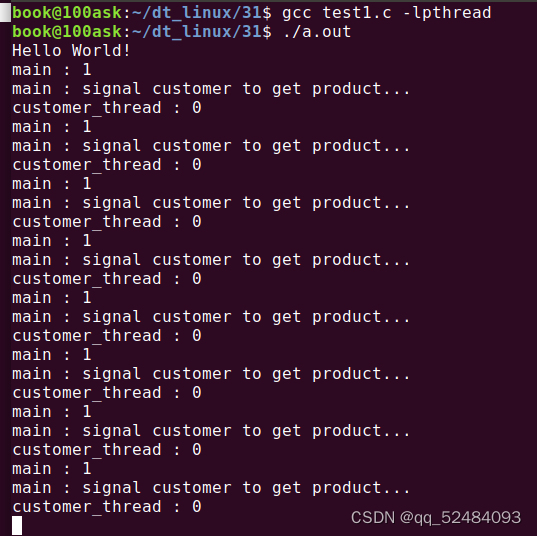 主线程为生产者,负责生产产品;子线程 customer_thread 为消费者,负责取走产品