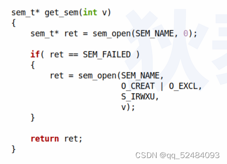 第 63 行,get_sem() 函数调用了 sem_open() 函数,sem_open() 用于打开或创建一个命名信号量