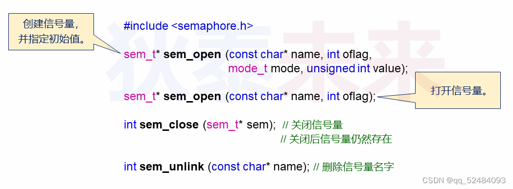 sem_close() 仅仅关闭信号量,信号量未删除