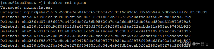 说明:rmi:remove image删除镜像。 nginx要被删除的镜像。