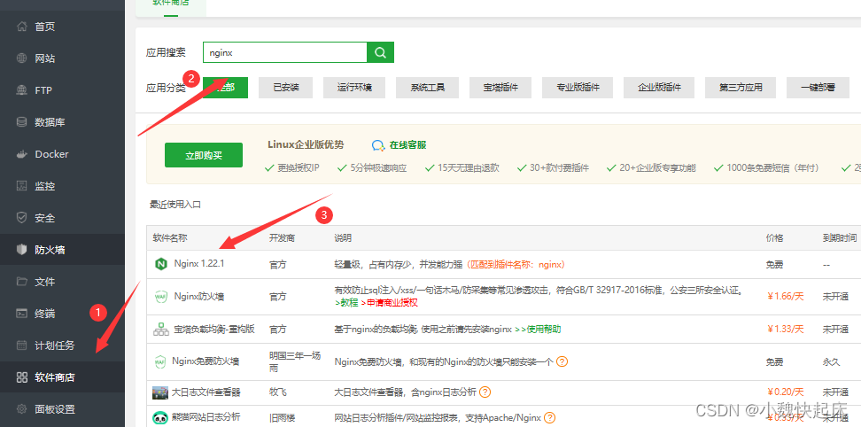 2、先通过宝塔可视化页面安装nginx