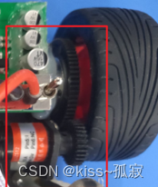为了精确测量电机转速,本小车使用的5V电压供电的龙邱512线轻量增量式编码器,该编码器重量轻,体积小,容易安装,非常适合用于四轮电磁组智能车的速度检测。用定制加工件和齿轮进行了安装配合,尽量使得传动齿轮轴保持平行,传动部分轻松、流畅,不存在过大噪音和丢数情况。编码器安装直接使用车模上的编码器安装孔。编码器的安装如图2-4所示。