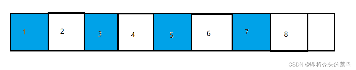 假设有这么一块内存区域, 他被划分成了两半, 其中标号的就是对象, 我们使用一侧空间的时候, 另一半空间是不使用的, 在垃圾回收的使用才使用.