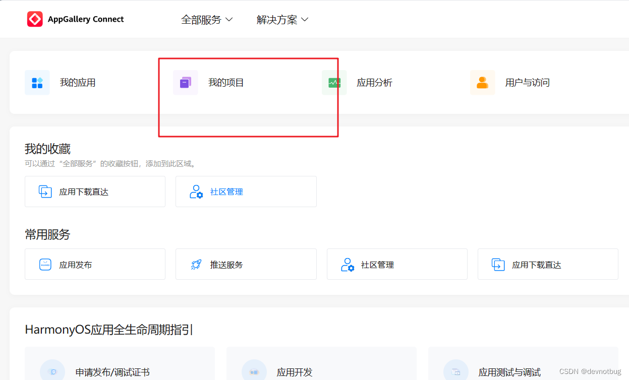 2. 找到AppGallery Connect ,点击“我的项目”。