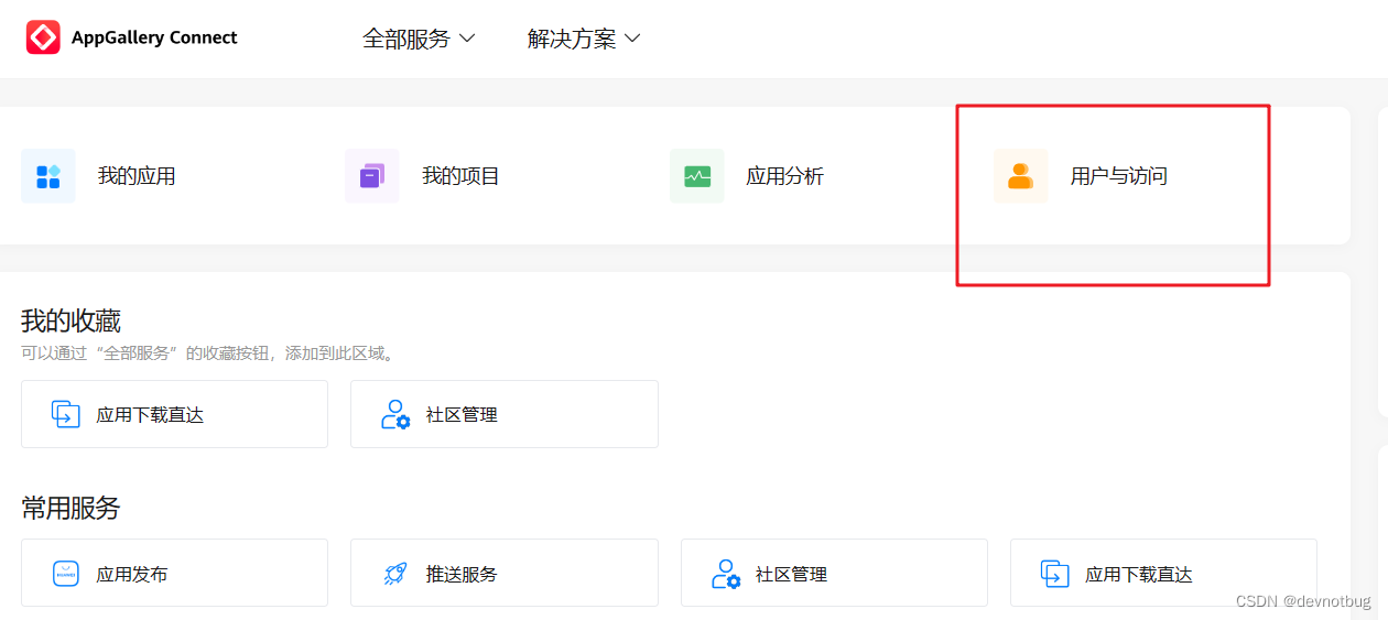 1. 登录 AppGallery Connect ,选择“用户与访问”