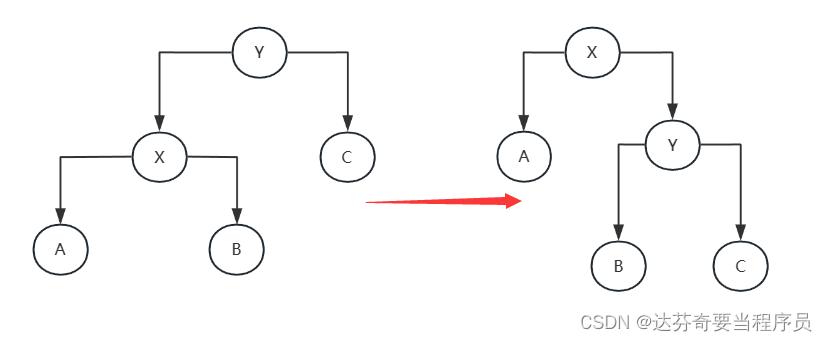 右旋是指将一个节点的左子树变为其父节点,同时该节点成为其左子树的右子节点。右旋用于解决左子树过深的情况。