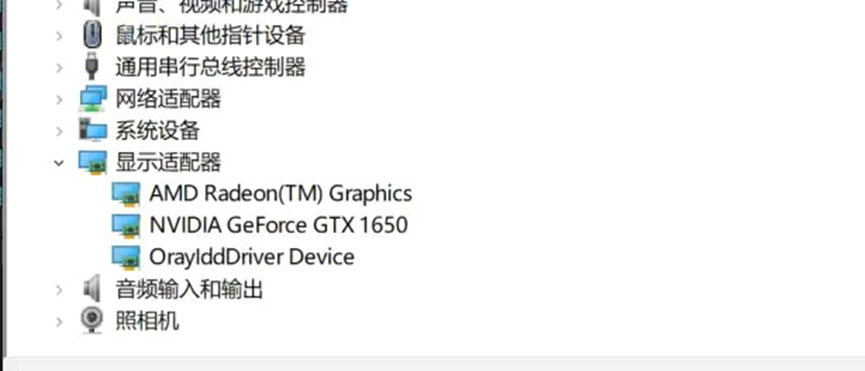 打开设备管理器,点击显示适配器,查看是否有独立显卡。我的是一个独显(GTX1650)和一个核显(Radeon)。