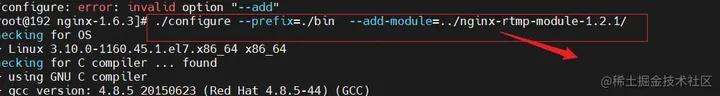 ./configure --prefix=./bin --add-module=../nginx-rtmp-module-1.2.1/