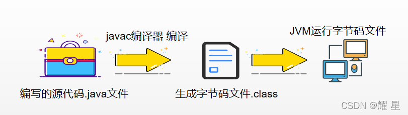 JVM(Java Virtual Machine):Java虚拟机,用软件模拟实现的硬件功能,本质上是一个程序,运行编译后的文件。