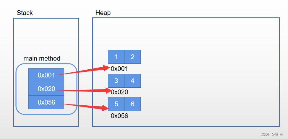 引用数据类型创建的变量,一般称为对象的引用,其空间存储的是对象的地址。