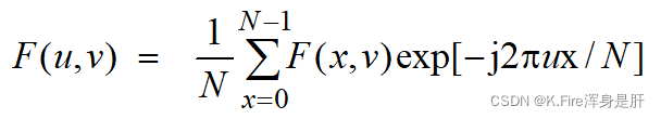 进行一次二维的傅里叶变换性质等同于进行两次一维傅里叶变换,先固定列(v),对x进行累加运算,算出F(x,v),然后再固定行,计算最终的二维傅里叶变换结果: