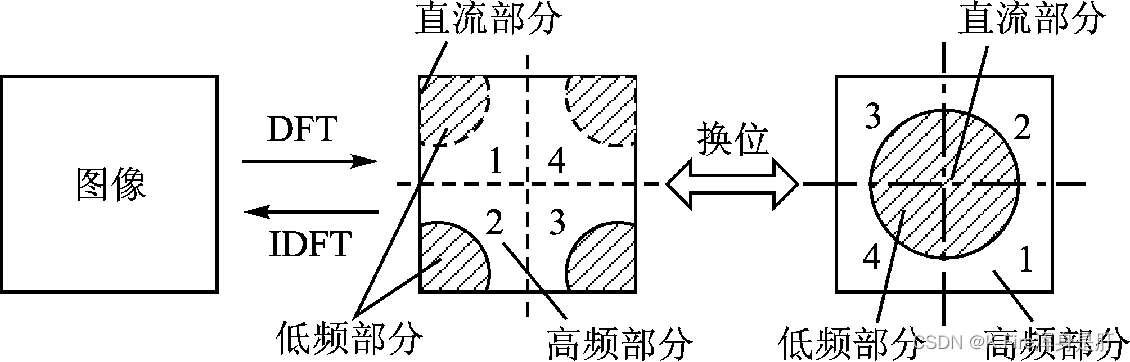离散傅里叶变换(DFT)描述了离散信号的时域表示和频域表示,经过傅里叶变换可以将时域上的图像转换为频域空间进行分析,是线性系统分析和信号处理中一种非常有效的数学工具。