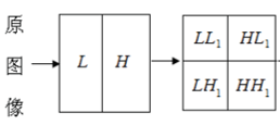 将小波变换由一维推广到二维,就可以用于图像处理,实质上相当于分别对图像数据的行和列做一维小波变换。通过水平和垂直滤波,离散小波将原图像分为4个子带图:垂直和水平的低频子带图像LL、水平方向的低频和垂直方向的高频子带图像LH、水平方向的高频和垂直方向的低频子带图HL、垂直和水平的高频子带图HH。