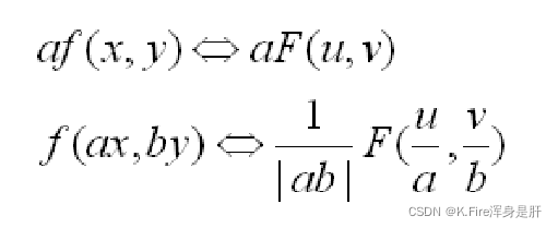 - 对f(x,y)在幅度方面的尺度变换导致对其傅里叶变换F(u,v)在幅度方面的对应尺度变化