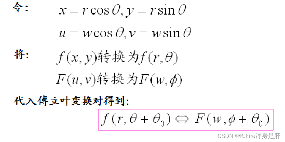 f(x,y)旋转一个角度对应于将其傅里叶变换F(u,v)也 旋转相同的角度