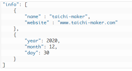 - 注意:数组不能直接存放JSON数据。以下示例是错误的
