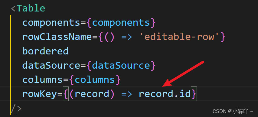 然后记得给 Table 标签添加 rowKey 属性,绑定唯一值