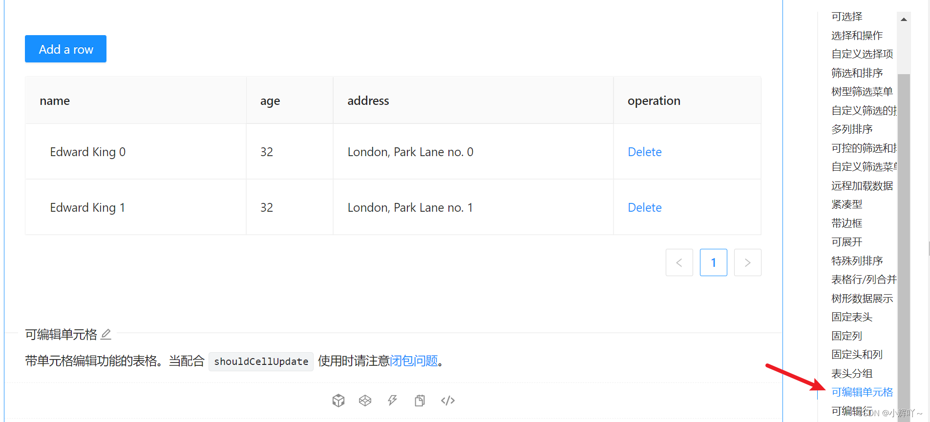 首先,官网文档上是有可编辑单元格和可编辑行的。我研究了好几遍,也是半知半解,只会用