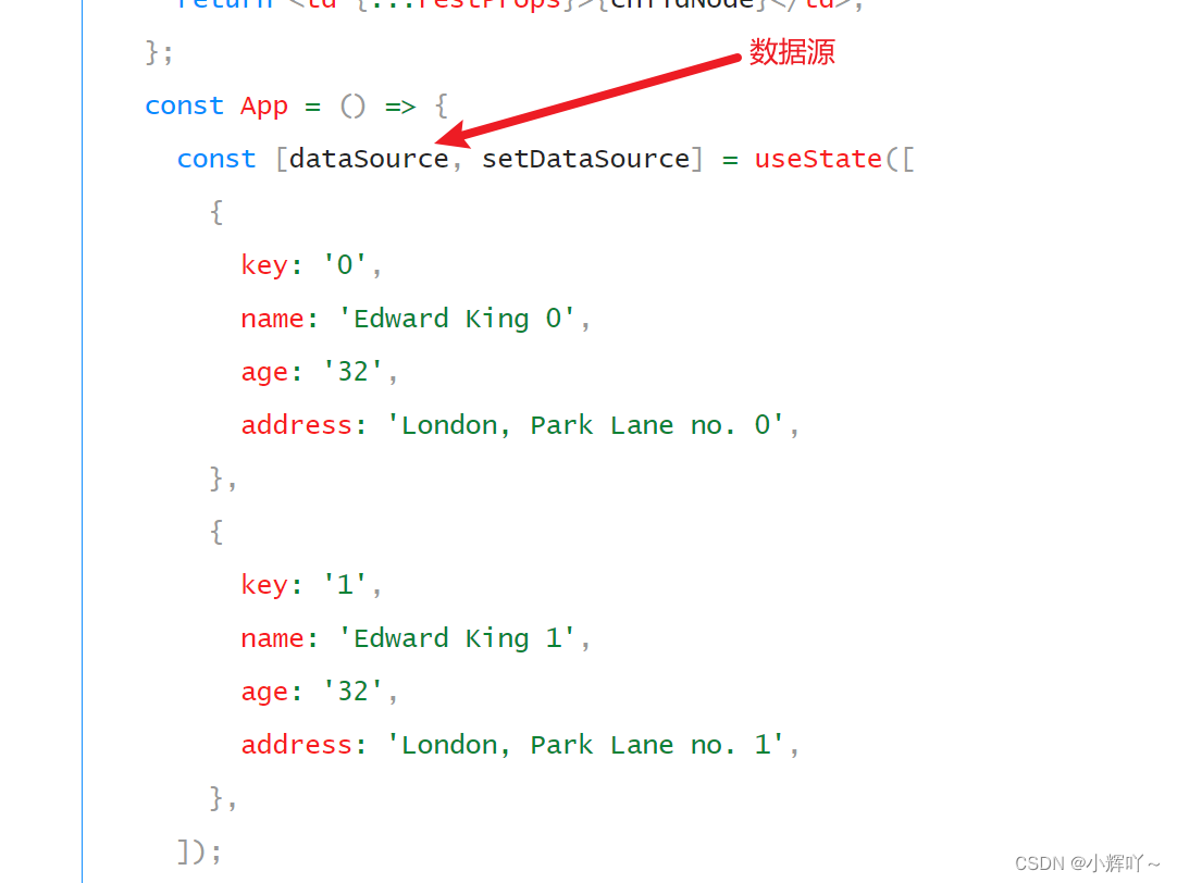 table的数据源,我们都是后端获取,所以这里把默认的清空就行。请求接口获取数据源,直接set进去就行