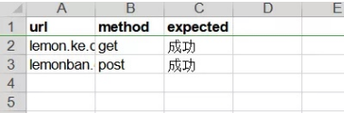 url, method, expected 是一个表的表头 header,其实就是每一列的名字,在数据库里我们称为字段名。下面的行都是数据。