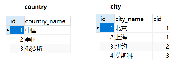 INSERT INTO city VALUES (NULL,'北京',1),(NULL,'上海',1),(NULL,'纽约',2),(NULL,'莫斯科',3);