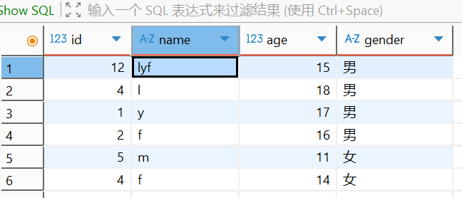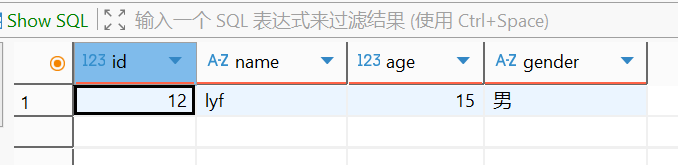 cursor.execute("insert into student values(12, 'lyf', 15 , '男');")