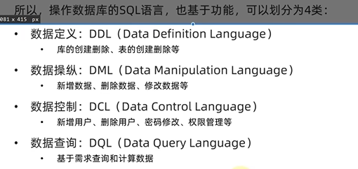 SQL全称:Structured Query Language,结构化查询语言,用于访问和处理数据库的标准的计算机语言。