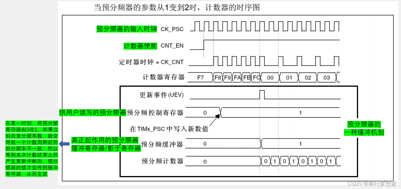 预分频器:对计数器的时钟进行分频,让这个计数更加灵活
