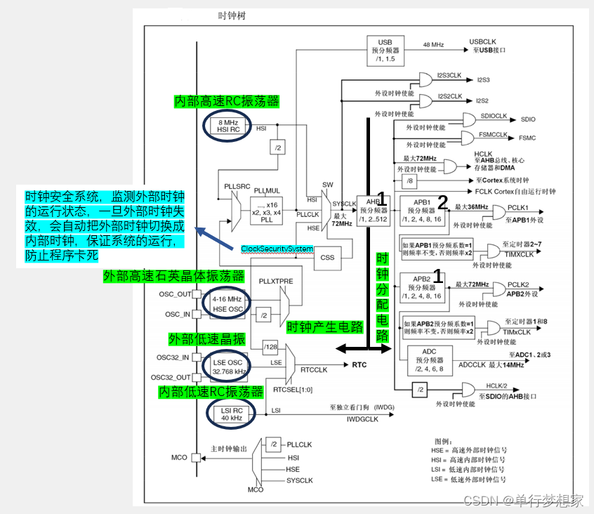 作用:产生和配置时钟,将配置好的时钟发送到各个外设系统