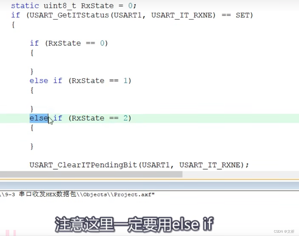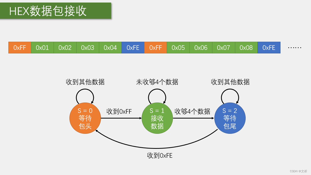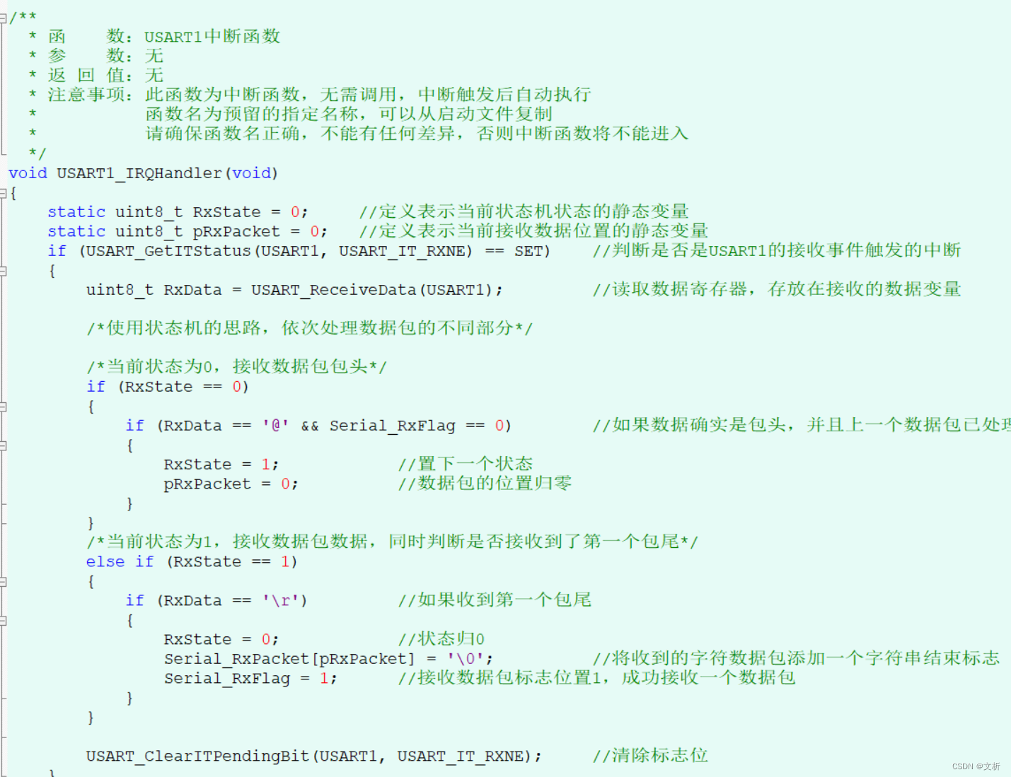 static uint8_t RxState = 0; //定义表示当前状态机状态的静态变量