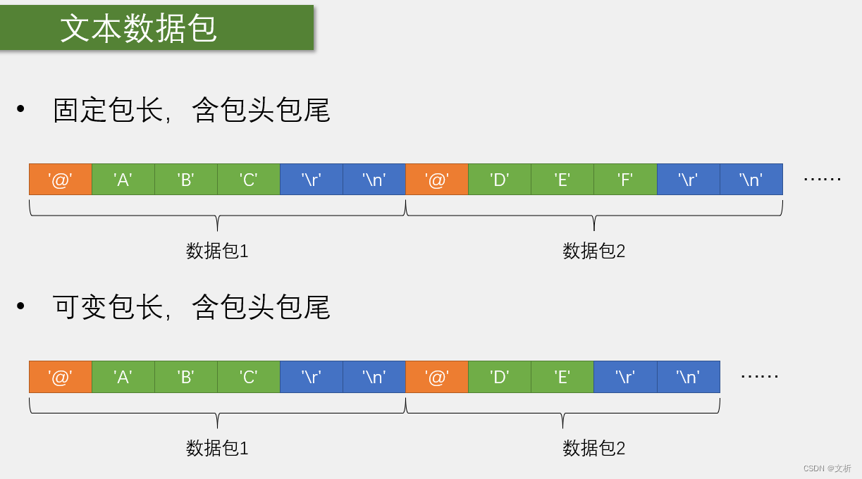 2.文本数据包的优点:数据直观易理解,非常灵活,适合一些输入指令进行人机交互的场合,比如蓝牙模块常用的AT指令,CNC和打印机常用的G代码,都是文本数据包的格式。