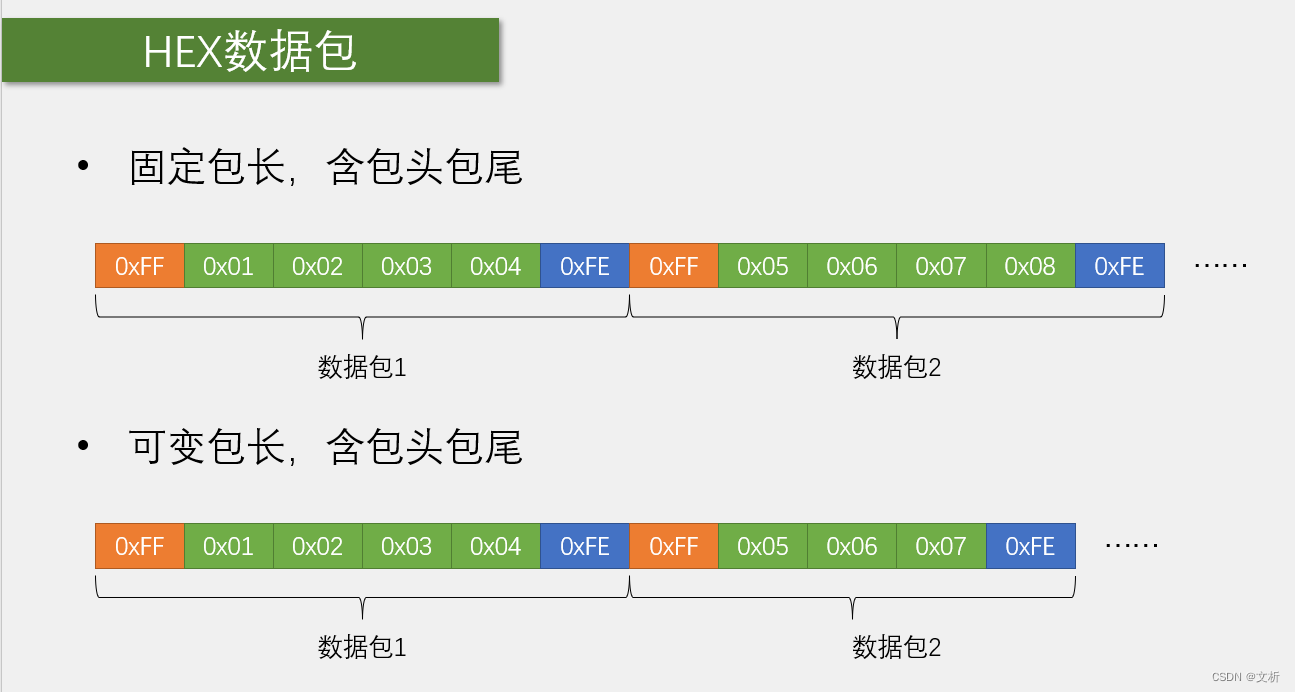 1.HEX数据包的优点:传输最直接,解析数据非常简单,适合一些模块发送原始的数据,比如使用串口通信的陀螺仪、温湿度传感器。