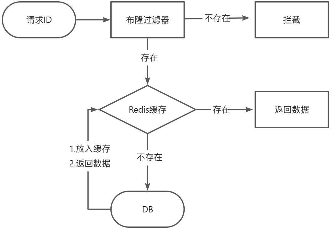 比如正常情况下用户发起一个请求根据某个主键ID获取数据库信息,服务器接收到请求后会先查询缓存,如果缓存命中则返回,未命中就去查询数据库,数据库中存在则返回并存入Redis,不存在提示或者报错。