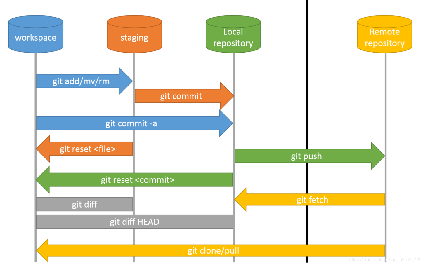 暂存区(staging area):隔离工作目录和Git仓库