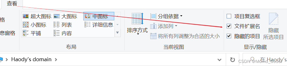 没有打开查看-扩展名