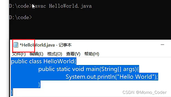 编写程序时,注意文件名和类名一致,先利用javac在终端命令行编译生成.class文件,再通过java命令执行可执行文件。
