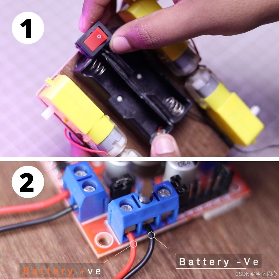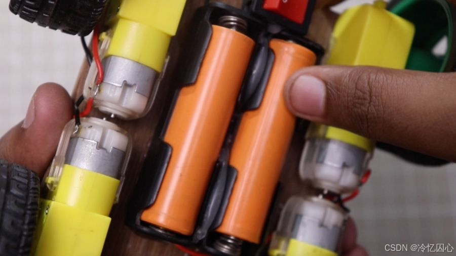 对于电池,我使用了 2 节 18650 电池。这对于制造这种类型的汽车非常有用。为了连接电池,我使用的是 2s 18650 电池座。我还添加了一个用于打开/关闭汽车的开关。