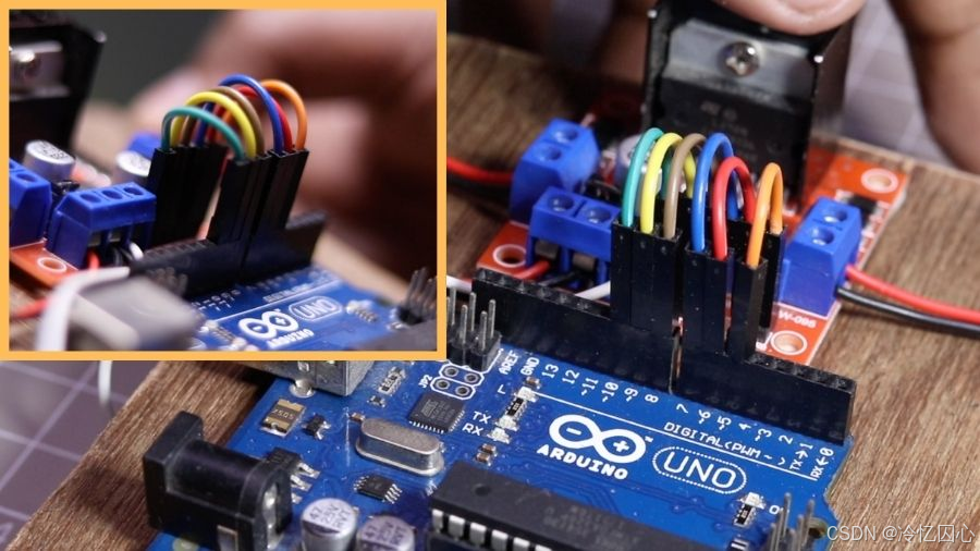 现在将电机线与 L298N 电机驱动器连接。然后拧紧电机驱动器线。并避免任何类型的松散连接。