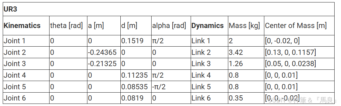 UR机械臂官方参数(改进D-H参数)全面解析 附MATLAB程序计算验证及雅可比矩阵求解验证 对UR官方给出的DH参数做一些说明,UR官方的机械臂参数就是改进DH参数,本文对这一DH参数进行了MATLAB验证和UR3机械臂的雅可比矩阵求解