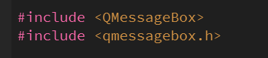 例如:#include <QMessageBox>和#include <qmessagebox.h>