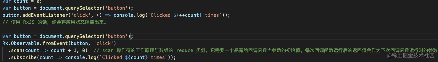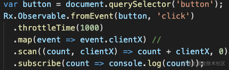 下图中,fromEvent便是纯函数,函数的输出不随外部变量的影响