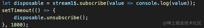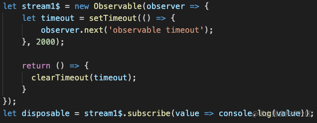 在上面异步处理的例子中,可以选择取消定时器:即取消订阅