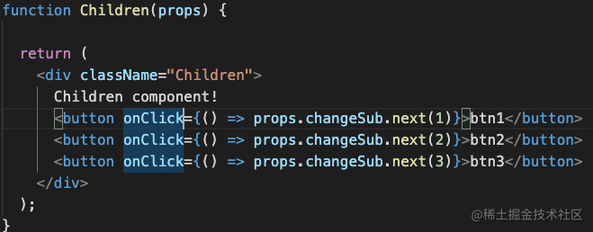 点击子组件的三个按钮,就会看到父组件的订阅触发了!