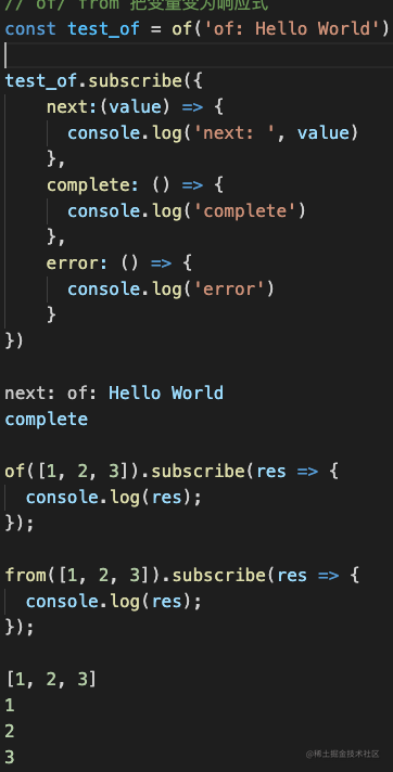 不同点: of订阅后忠实的打印源对象,from会将源对象解构后依次打印。是不是有点像Promise.all ?