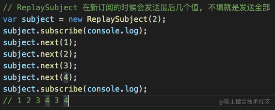 ReplaySubject:每次新订阅时,可指定获取管道中最新的N个数据