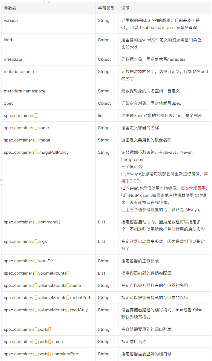 - 还可通过 kubectl explain 资源类型 来查看语法文档